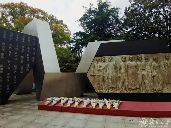 清明时节,复旦本部校区,烈士雕塑纪念广场上庄重肃穆,早有师生献上的鲜花,寄托对英烈的深切缅怀和崇高敬意。