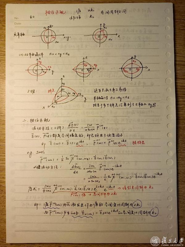 将学到的知识写下来,老师的板书将会成为自己的印象,课本的知识经过自己的理解加工,也将会更加深刻。我的笔记大多是存在页眉、页脚和页码的,页码方便整理,页眉页脚用作本页概览,共同形成一个相对完整的知识脉络。虽然不是很精美,但也是保留了3种颜色,黑色正文、红色重点,蓝色提醒注意和勘误。一门课程结束以后,这本几十页的笔记也将成为之后快速回溯知识的灵活且亲切的ref。