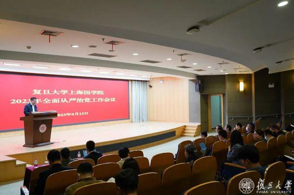 4月13日下午,复旦大学上海医学院召开2023年全面从严治党工作会议,深入学习贯彻党的二十大精神和习近平总书记在二十届中央纪委二次全会上的重要讲话精神,贯彻落实十二届上海市纪委二次会议、2023年教育系统全面从严治党工作视频会议以及2023年上海市全面从严治党警示教育大会精神,结合医学院实际部署落实2023年全面从严治党工作。校党委副书记、上海医学院党委书记袁正宏讲话,上海医学院党委副书记、副院长徐军主持会议。