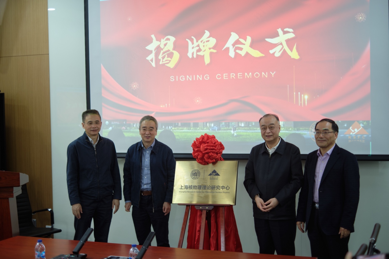 2023年4月14日,国家自然科学基金理论物理专款-上海核物理理论研究中心在我校江湾校区交叉科学1号楼举行项目启动授牌仪式暨第一次学术委员会会议。基金委数理学部常务副主任董国轩、数理学部项目主任姜向伟、理论物理专款主任向涛院士、副主任蔡荣根院士,中科院上海高等研究院沈文庆院士、中物院计算科学中心罗民兴院士、中科院理论物理研究所邹冰松院士,复旦大学副校长张人禾院士,复旦大学陶瑞宝院士、龚新高院士,以及来自中科院高能物理研究所、中科院上海应用物理研究所、北京大学、清华大学、上海交通大学、南开大学、同济大学、山东大学、吉林大学、重庆大学,美国劳伦斯-伯克利国家实验室等的专家、学者共同出席了项目启动仪式和第一次学术委员会会议。