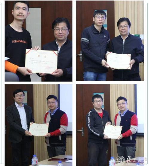 分享发言环节结束后,王昕、彭鑫共同为阿里行业导师代表颁发了复旦大学研究生行业导师聘书并合影留念。