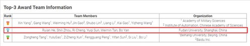 图1. 第三届反无人机第二赛道前三名的团队信息