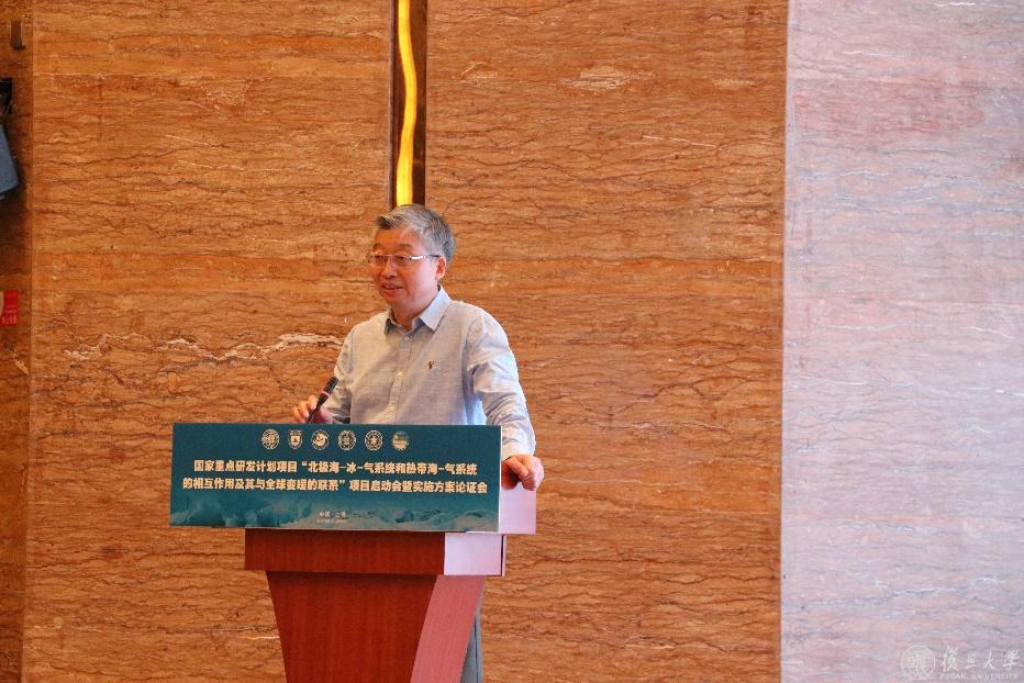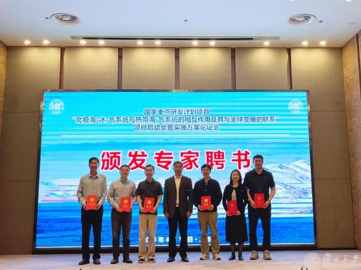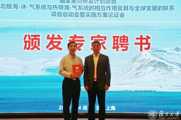 本项目是复旦大学首个获批的国家重点研发计划“地球系统与全球变化”重点专项项目。科技部高技术研究发展中心张峰处长出席会议并讲话,张峰对项目在基础研究领域产出国际突破性成果寄予厚望,并在人才培养、团队管理、法人单位责任制等方面给予了指导性意见。中国科学院院士、复旦大学校长助理、科研院院长马余刚致欢迎辞,并为出席会议的项目咨询专家组成员王会军院士、黄建平院士、杨修群教授、陈文教授、陆日宇研究员、吴仁广教授、钟中教授、刘屹岷研究员、田文寿教授和陈海山教授颁发了聘书。会议由复旦大学科研院纵向研究处处长杨鹏主持。