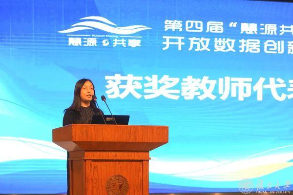 活动现场,第四届“慧源共享”全国高校开放数据创新研究大赛颁奖仪式举行,来自复旦大学、上海交通大学、山东大学、浙江大学、南京大学、香港大学等高校32支学生队伍获奖。复旦大学学生团队获特等奖,队长张婉君代表获奖学生发言。16名教师获“优秀指导教师奖”,上海交通大学图书馆副馆长董笑菊代表发言。