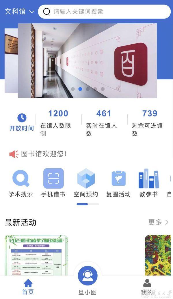 集成更多线上功能,2022年12月,复旦大学移动图书馆上线。一部手机就能查看在馆人数、新书推荐、复圕活动、课程指定参考书、数据库导航,还能预约座位、自助借书、接收图书预约和催还通知,师生所需的图书馆服务一站式便捷提供。
