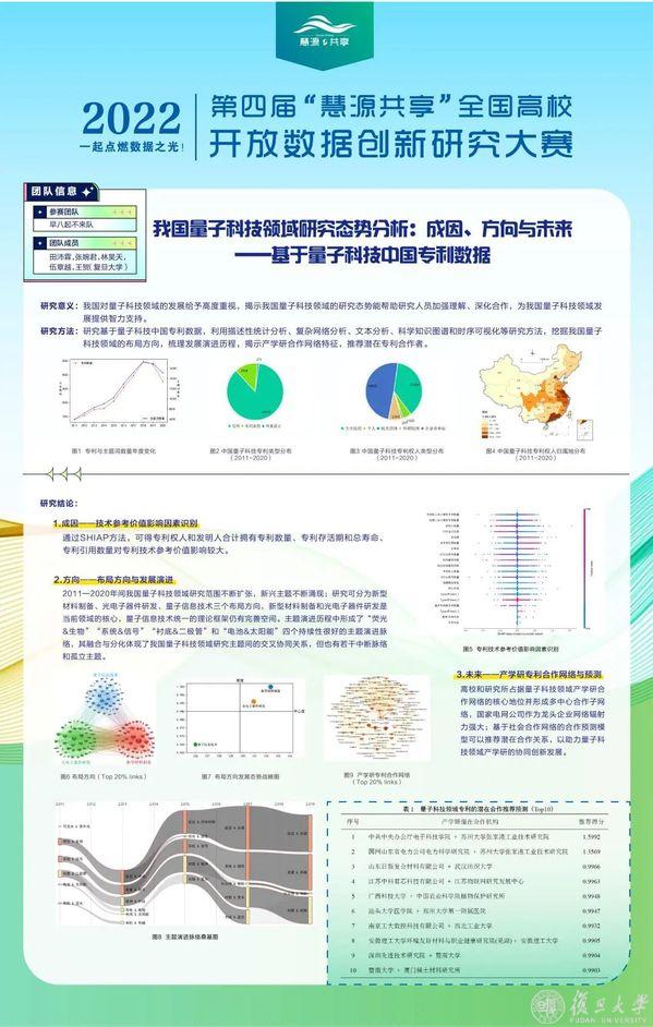 利用丰富的研究方法,他们将专利数据集条分缕析,形成一份详尽直观的研究报告。不仅阐述了我国量子科技领域的布局方向,能够帮助研究人员加强理解、深化合作,为我国量子科技领域发展提供智力支持;在此基础上,还利用合作网络模型实现潜在专利合作者推荐功能,实现研究成果的应用孵化。