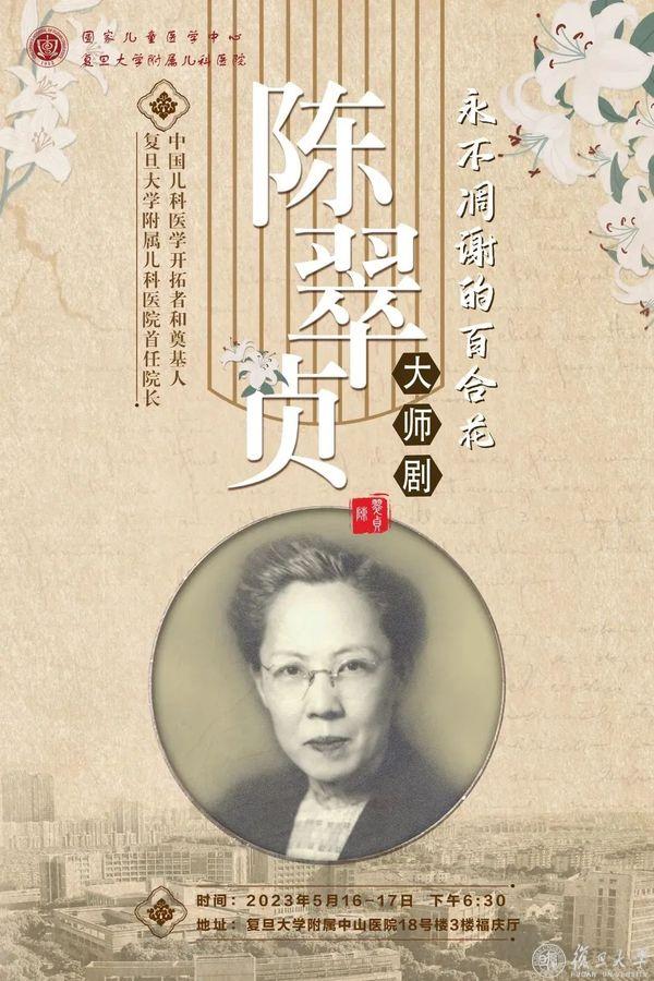 今年是陈翠贞教授诞辰125周年,致敬一代大师,传承儿科精神——复旦大学附属儿科医院历经一年多的筹备,大师剧《永不凋谢的百合花·陈翠贞》于5月16日、17日晚在中山医院福庆厅公演。