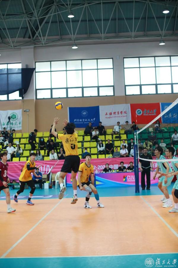 5月18日下午15时45分,随着最后一声哨响,复旦大学男子排球队在决赛中以3:1战胜南昌大学,最终夺得2022-2023中国大学生排球联赛(高水平组)总决赛(男子组)冠军。