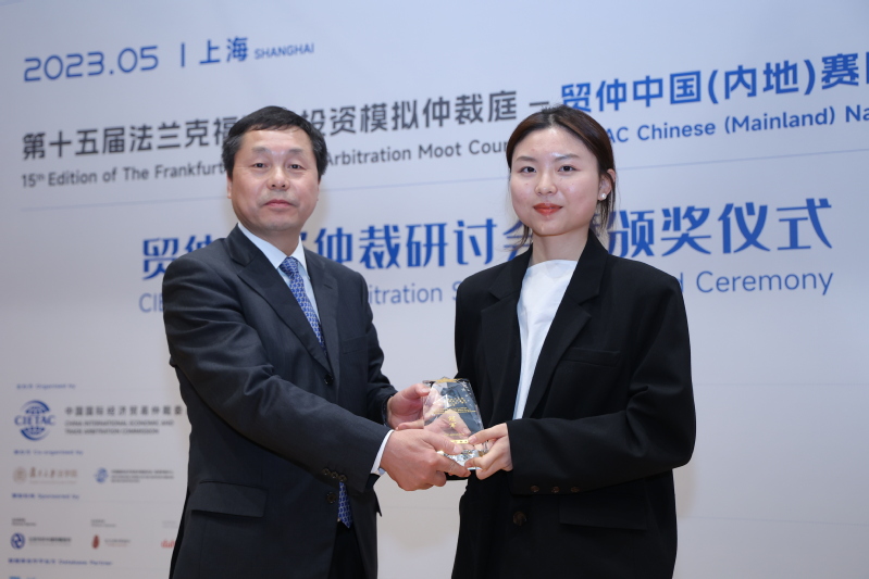 贸仲副主任兼秘书长王承杰先生为冠军颁奖