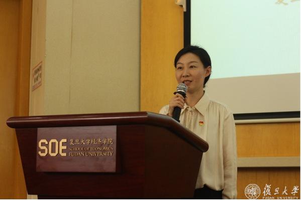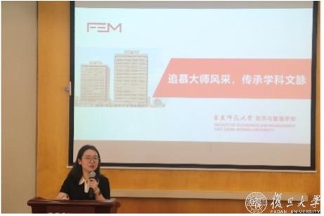 在下半场的演讲中,华东师范大学经济与管理学部经济学院硕士研究生党支部书记林悦介绍了学部培养德智体美劳全面发展的社会主义建设者和接班人方面的工作,希冀经管学子传承学科大师文脉。