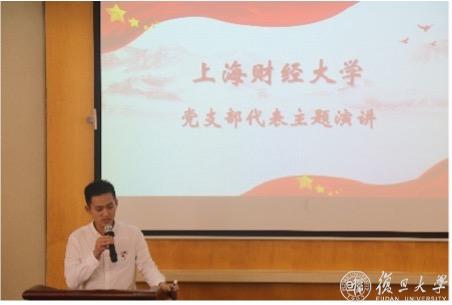 上海财经大学金融学院研究生第四党支部书记雷升霖通过“寻道”“悟道”“得道”“筑道”四部分内容呼吁同学们以史为鉴,才可不忘来时路;坚守初心,方能开创新未来。
