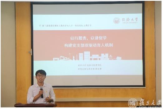 同济大学经济与管理学院研究生第九党支部书记姬永顺带来了“以行履责,以讲促学,建党支部双驱动育人机制”的主题分享,重点介绍了支部的双驱动育人机制及成效。