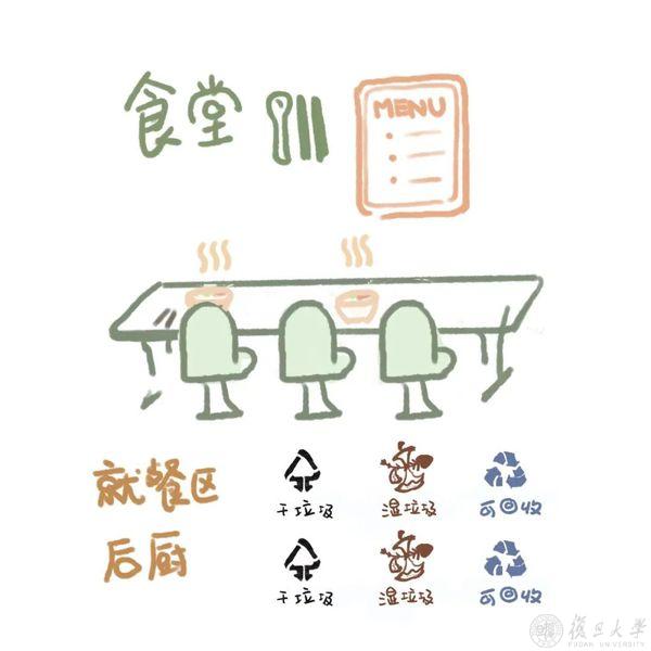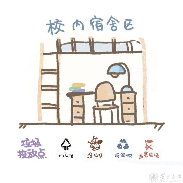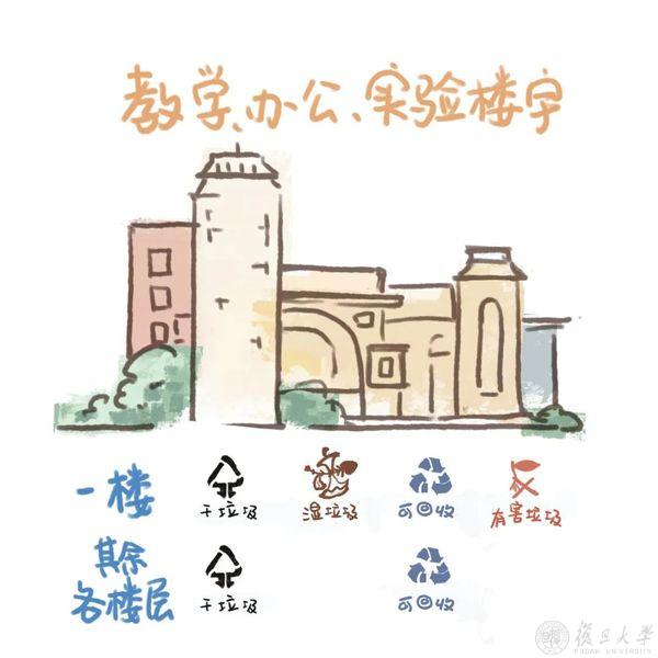 学校按照《上海市生活垃圾管理条例》和《上海市高等学校生活垃圾分类指南》的要求,结合校内各区域出现生活垃圾的类别,相应配置垃圾容器。