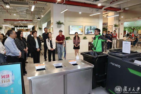 执法检查组一行详细询问餐厨垃圾处理、油水分离等情况。2019年,复旦大学引入餐厨垃圾智能化处理系统,利用微生物技术对餐厨垃圾和厨余进行生物降解、水气处理,降解率高达95%以上。通过预先设置的管道,系统还能负压收集到处理机房,对垃圾进行油、水、气的达标排放。