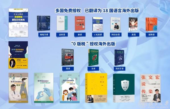 出版新冠及传染病科普图书,以公益和销售相结合的方式累计发行量逾140万册;其中《张文宏教授支招防控新型冠状病毒》被翻译为18个语种出版。
