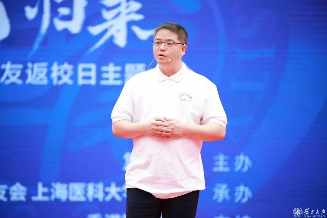 在随后的校友代表Ted演讲中,2003届计算机系校友,上海鸭嘴兽网络科技有限公司创始人、CEO唐红斌,代表毕业20周年的校友,分享了他的人生经历与成长感悟:“我在复旦度过了人生最美好的时光,至今它还不时出现在我梦境中,是我永不褪色的青春记忆。”感恩母校让他结识了志同道合的创业伙伴,复旦就是他人生的新的起点,复旦给予了他全新的视野和丰富的滋养。