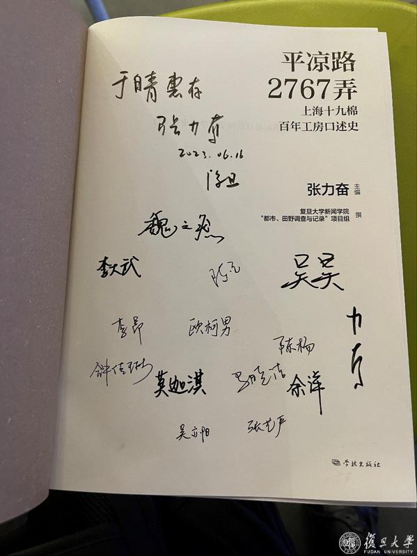 昨天(6月16日)下午,在“都市考古与民间记忆——《平凉路2767弄》出版暨学术研讨会”上,校内外专家学者、口述史受访“居民”、师生代表齐聚复旦大学新闻学院,展开4个多小时的“马拉松”分享讨论,共同见证新书出版。当天上午参加完毕业典礼的12位新闻学院本科生,则收获一份特殊的“毕业礼物”:两年前的课程作业成为新书出版了。