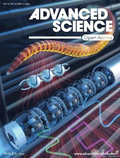 5月17日,工程与应用技术研究院方虹斌课题组首次提出中枢模式发生器(Central pattern generator, CPG)启发的仿蠕虫移动机器人多功能控制架构,其在实现多类型步态集成控制的同时,有效提高了机器人的运动效率,强化了机器人的场景适应能力。相关研究以“A CPG-based versatile control framework for metameric earthworm-like robotic locomotion”为题发表在国际综合性期刊Advanced Science,并被遴选为封底文章。