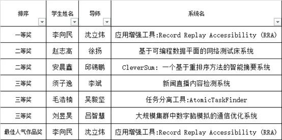 本次比赛评委会由王晓阳、高跃、钱振兴、张为华四位教授组成。共有7位硕士毕业生的参赛作品进入决赛综评。作品涉及内容检测、异常检测、任务分离、应用增强、网络测试、通信优化、智能摘要等领域。参赛同学提交了包括系统说明书、系统演示及学位论文在内的的参赛作品。决赛场上,7位同学一一介绍了自己的作品并进行了演示,评委专家对每位同学的作品进行了点评和提问。最终,评委会经过讨论和投票评出了1个一等奖、2个二等奖和3个三等奖。本次比赛继续设立了最佳人气作品奖,通过学院研究生会公众号征集观众投票并决出支持度最高的作品。