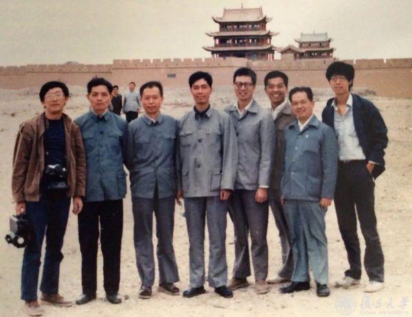 1986年8月与复旦大学史地所同仁在甘肃考察丝绸之路(左起:葛剑雄、郑宝恒、赵永复、钱林书、邹逸麟、杨正泰、王文楚、郁越祖)