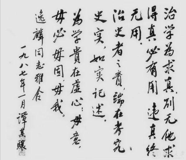 “ 在历史学界,过去谈到我们这个单位,就会说那是画地图的。所以,我一直强调,地图定要画,但不能一辈子画,也不能只会画地图……我们所在全国最有威望的学科是沿革地理,这是创始人谭先生传下来的,但不能几十下来,只有沿革地理一个权威学科吧!”