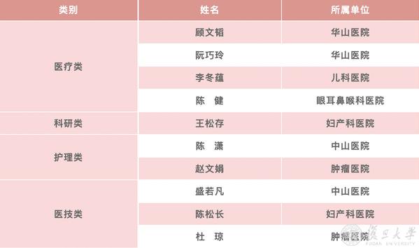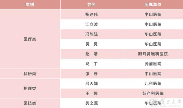 第十一届复旦大学“十大医务青年”提名奖获得者