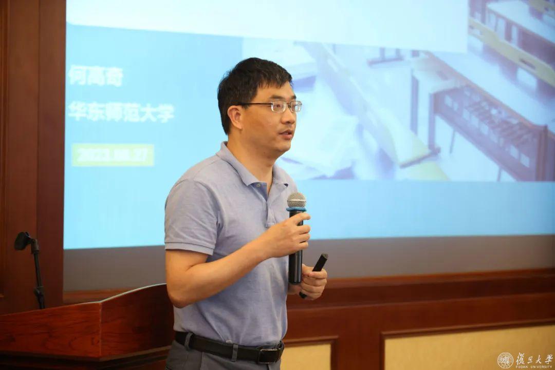 华东师范大学计算机科学与技术学院第一党支部书记何高奇带来题为《围绕主题突出主线,开展算法课程思政建设》的主题发言,介绍课程思政和新工科、计算机类课程思政的若干思考及教学探索。