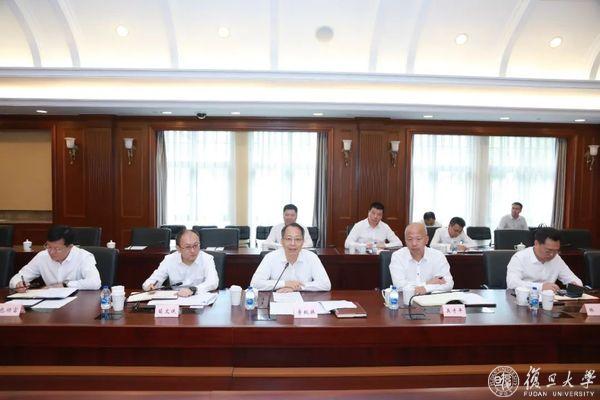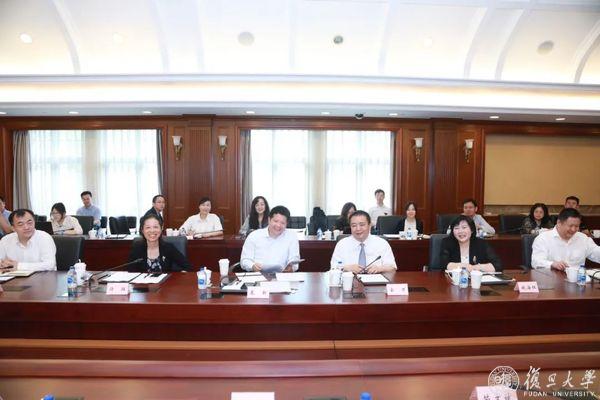 7月3日,台州市委书记李跃旗一行来访复旦大学,双方就推动长三角一体化、优势互补、协同发力、共同合作,进行座谈交流。复旦大学党委书记裘新、校长金力出席座谈会。常务副校长许征主持会议。