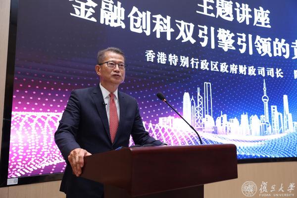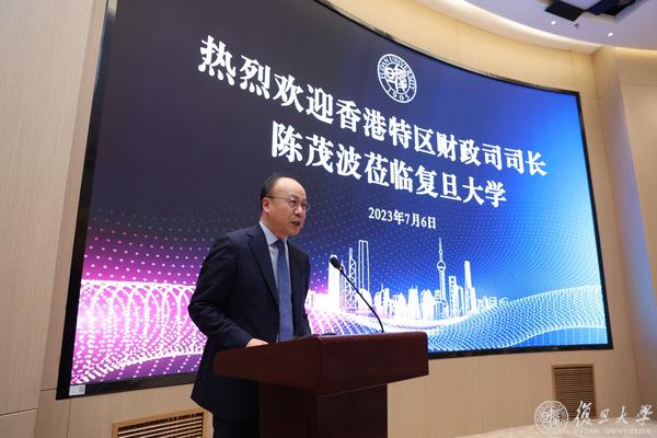 2023年7月6日晚,香港特区政府财政司司长陈茂波莅临复旦大学逸夫楼,作题为“金融创科双引擎引领的黄金机遇”的演讲,阐述香港最新的经济近况、独特优势及未来发展趋势。副校长陈志敏致欢迎辞,演讲结束后,陈茂波与复旦学子展开热烈交流。