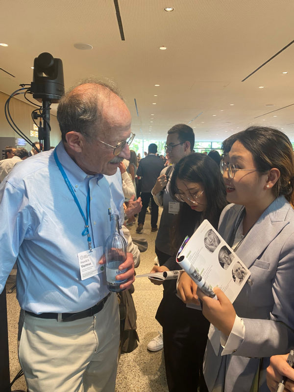 汪瑜与1989年诺贝尔生理学或医学奖得主Harold E. Varmus教授进行交流