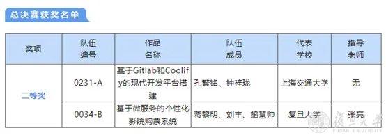 2023年6月18日,首届“天翼云杯”上海市大学生云计算应用大赛总决赛在上海大学宝山校区召开,来自沪上各大高校的10支参赛队伍闯入决赛,经过激烈角逐,复旦大学“基于微服务的个性化影院购票系统”项目获总决赛二等奖。