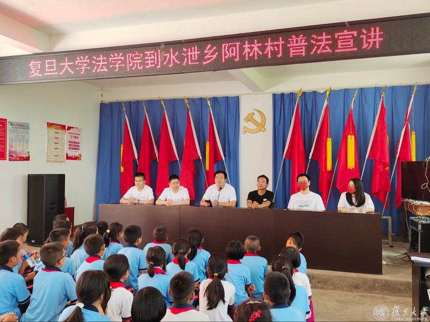 复旦与永平携手十余年来,始终将定点扶贫与乡村振兴作为党和国家赋予的光荣使命。在学校党委领导下,复旦大学法学院一直秉承高度的社会责任感,持续助力水泄彝族乡推动乡村治理法治化,以法治保障乡村振兴,尤其注重乡村法律教育投入与推广。2023年6月29日,由复旦大学法学院院长王志强带队十余位青年骨干教师奔赴云南省水泄彝族乡开展普法讲座与实地调研,并为水泄乡初级中学带来了爱心捐赠图书。