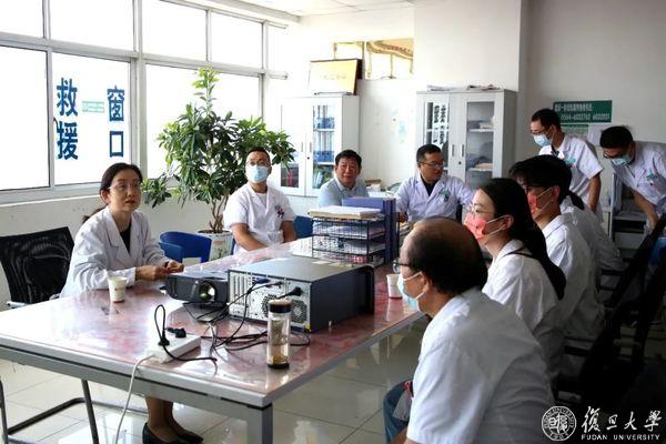 此外,每位临床导师还带领学生分别至对应科室开展临床查房和疑难病例讨论。专家导师们为当地医院带去了先进的疾病治疗方案、科室建设建议、医院管理理念,为革命老区的医疗发展献计献策,贡献力量。学生们也通过亲身实践对医患沟通、基层医疗服务体系建设等方面的问题有了更深刻直观的理解。传播学专业的魏泽在自己的记录中写道:“这四天,我跟随中山医院消化科曾晓清教授深入四家医院的临床一线进行查房,看到了很多病人,也了解了更多基层医疗现状。”对于非医学专业的他来说,这更是一次难能可贵的经历。