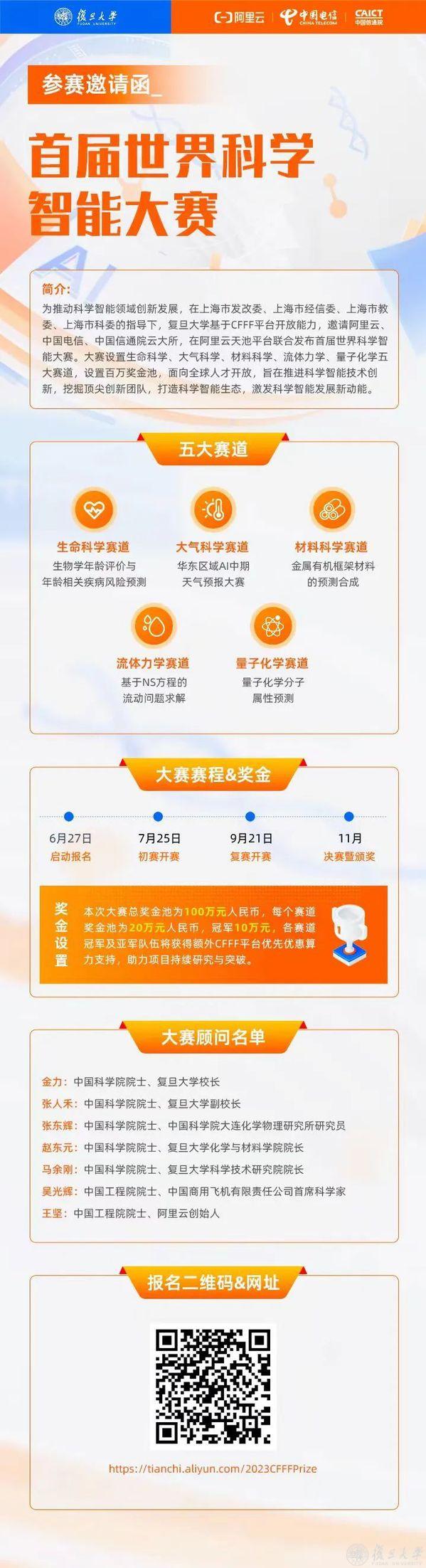 世界科学智能大赛是一个推动人工智能与科学研究交融的重要平台。在首届比赛中,人们能看到“AI for Science”新范式的应用实践,见证人工智能为科学领域带来的全新研究视角、全新变革,甚至为人类打开科学想象力的大门。大赛主办方也期待全球人才借此平台交流竞技,共创科学智能生态。大赛于7月25日正式开赛,有意者请扫描下图二维码即可报名参与大赛。