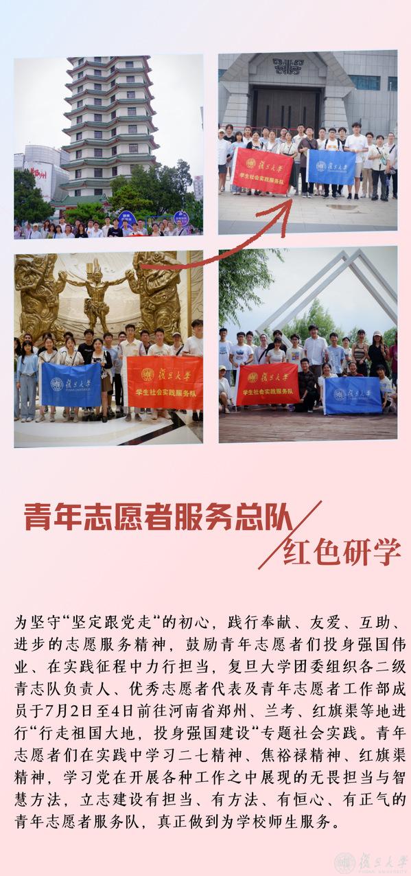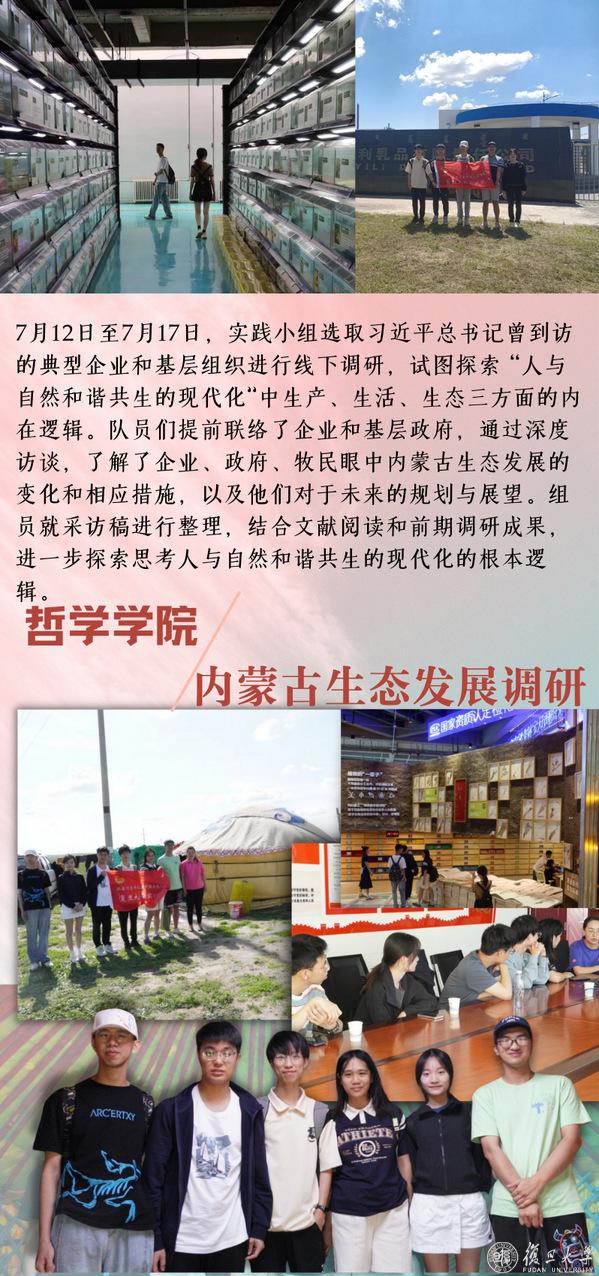 他们行走祖国大地,了解国情民情,激发挺膺担当,深刻体悟“国之大者”;他们遍访行业、深入基层,感知新时代十年伟大成就,增长见识才干,锚定人生发展方向;他们扎根服务、积极探索,以实际行动投身强国之路,用脚步丈量大地,用肩膀承担责任,在中国式现代化的强国征程中,留下复旦人的足迹、身影。