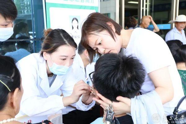7月9日至15日,博医团赴湖北公安县开展医疗卫生志愿服务。一到当地,博医团成员们就投入到紧张忙碌的临床诊疗工作中。在公安县人民医院,专家们分别前往各科室开展查房指导。博士生志愿者们也深入门诊诊室和病房,与县医院医生和患者进行沟通交流。口腔医学院邓佳佳博士为当地儿童免费看牙,与当地口腔科医生交流口腔正畸方面的诊疗心得,并在现场进行弓丝弯制和矫正病例分享;眼耳鼻喉科医院眼科学翟如仪博士参与了几位复杂眼科病人的会诊,对疑似病人的确诊、治疗及后续随访提出了专业建议。