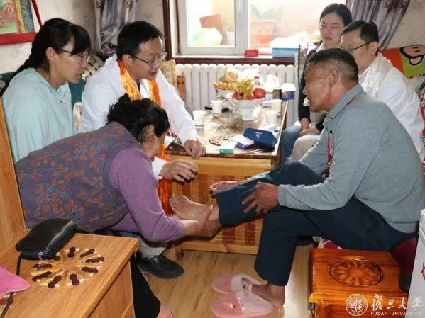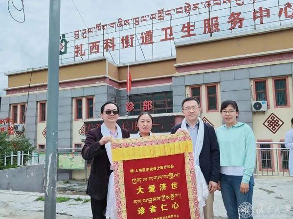 本次博医团“送医入户”走访了多户藏民家庭,涵盖了心脑血管病、糖尿病、风湿关节等多种常见病、高发病。扎西科街道卫生服务中心的医护人员对博医团的医疗服务工作表示感谢,并向博医团赠送了锦旗。“大爱济世,诊者仁心”简单的几个字,表达了对复旦上医博医团的赞扬和肯定。