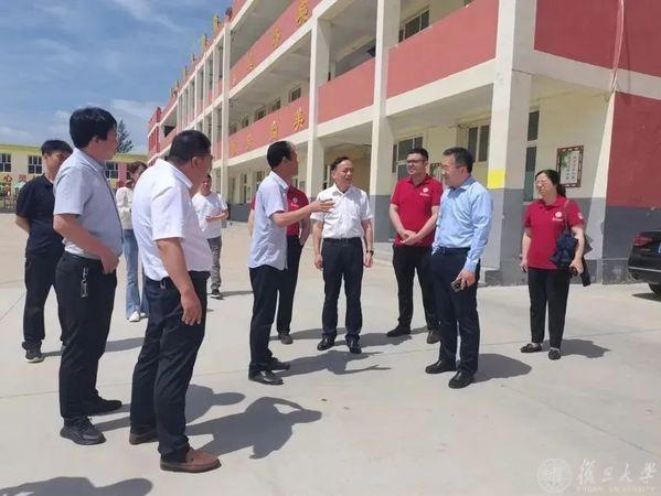在宁夏西吉,袁正宏书记等与复旦大学研支团支教老师和所带学生进行交流