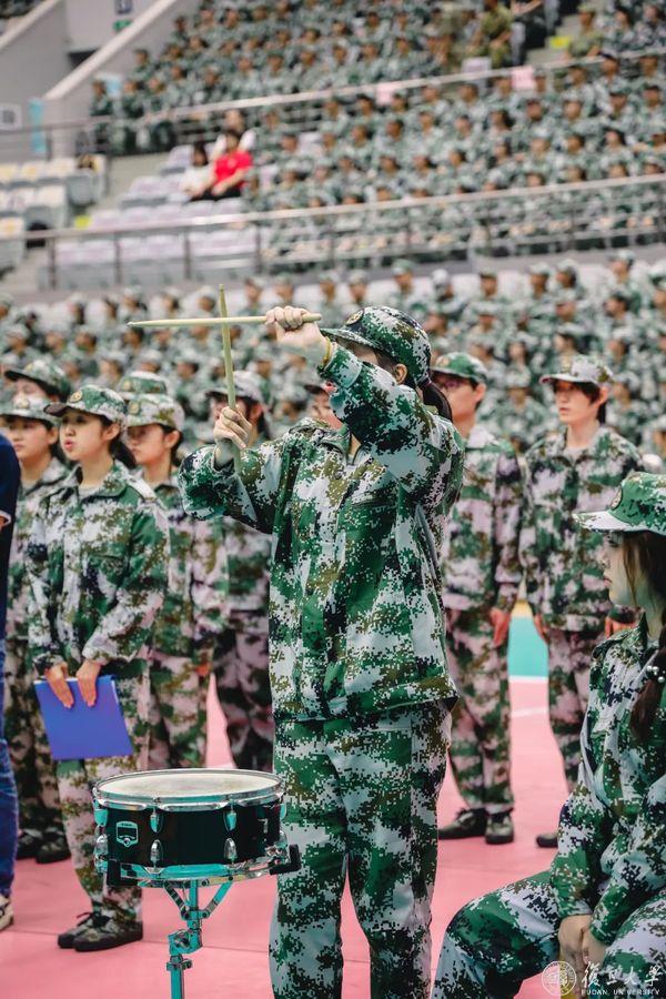 鼓声激荡,信仰坚定,回首数日,笑容绽放,伴着大屏幕上各连队精心制作的军训MV,激荡起昂扬的旋律,响彻正大体育场。