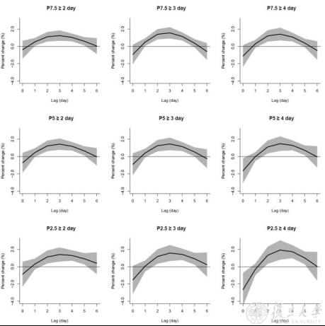 近日,公共卫生学院陈仁杰教授课题组联合中国人民解放军南部战区总医院向定成教授团队和武汉亚心总医院苏晞教授团队,基于中国心血管健康联盟-胸痛中心数据库,开展了一项寒潮与急性心梗发作的全国流行病学研究。该研究发现寒潮暴露可增加我国人群急性心梗发作风险;效应于暴露后1天出现,3天后达到峰值,5天后趋于不显著,且不受每日平均温度的影响。分层结果显示,寒潮对心梗发作的影响在我国非供暖区显著,在供暖区则不显著或明显减弱。相关研究成果以“Cold spells and the onset of acute myocardial infarction: a nationwide case-crossover study in 323 Chinese cities”为题在线发表于环境与健康领域权威期刊Environmental Health Perspectives。该成果提示,寒潮对于人群AMI发作的影响出现较为迅速。因此,我国居民应该关注寒潮预警,及时采取防护措施,以减少寒潮对心血管健康的不利影响。