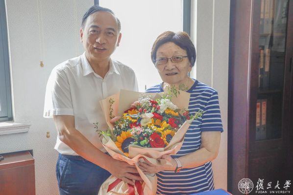 “闻老师,我代表学校和医学院来看望您,祝您教师节快乐!”9月8日上午,袁正宏来到位于复星楼的中国工程院院士、基础医学院教授闻玉梅的办公室,关切询问了闻院士的身体状况,并嘱咐闻院士保重身体。袁正宏向闻玉梅介绍了近期校园文化建设的新动向,闻玉梅表示,期待校园文化愈加繁荣,并祝福医学院发展越来越好。