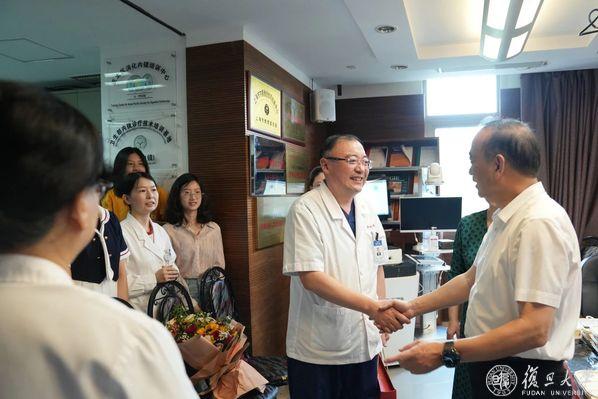 当天,袁正宏还来到中山医院,看望慰问了汤钊猷院士、樊嘉院士以及荣获第十三届“中国医师奖”的钟鸣医生、荣获第十七届“上海市科技精英”提名奖的周平红医生,为优秀教师代表送上了节日祝福并对大家为学校、医学院教书育人和事业发展所作出的重要贡献表达诚挚的谢意。同时,院领导还结合学校和医学院如何进一步高质量发展向院士专家问计、问需。