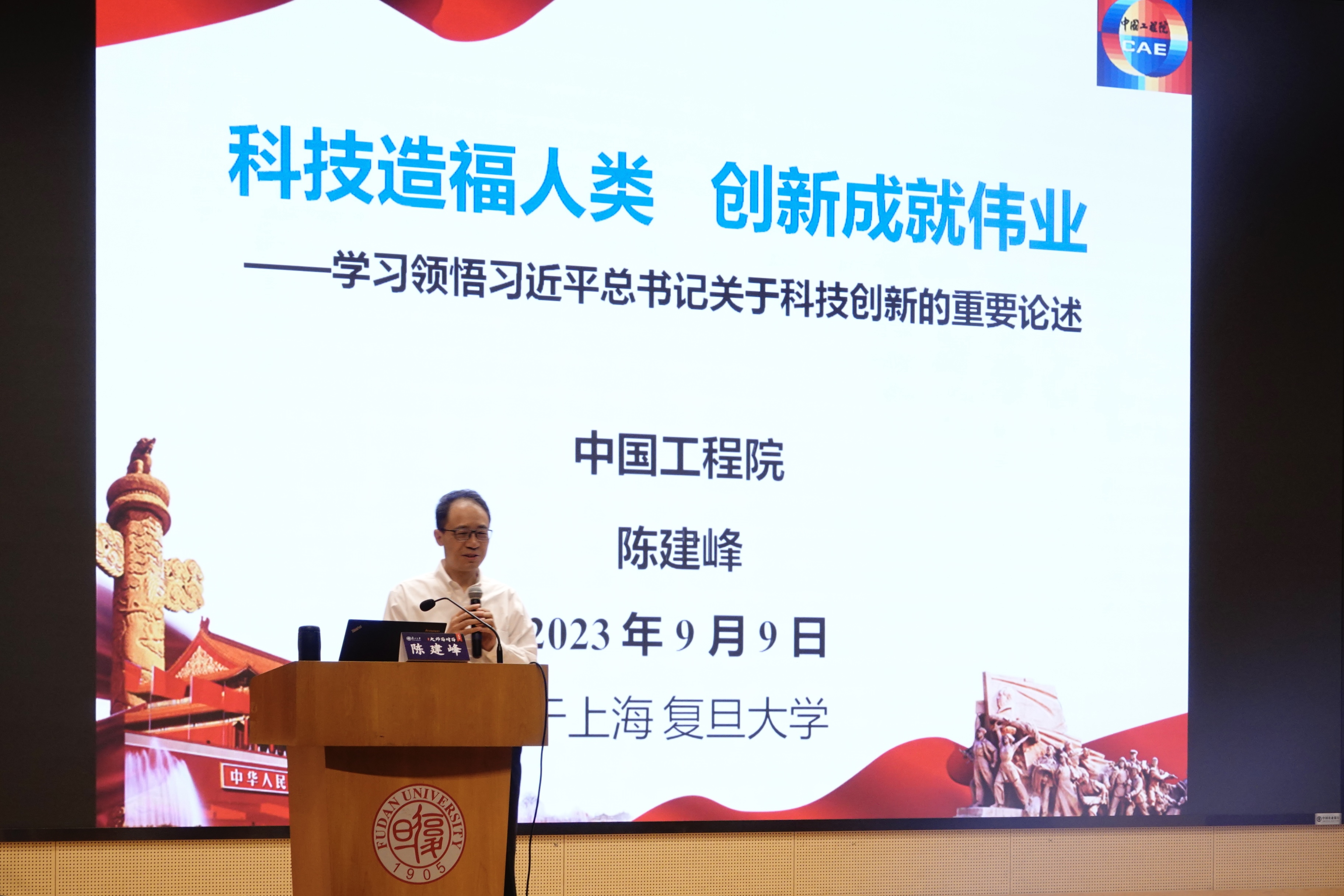习近平总书记在党的二十大报告中明确指出,要加快建设教育强国、科技强国、人才强国,坚持为党育人,为国育才。为落实二十大精神,引领广大研究生践行“博学而笃志,切问而近思”,树立科学报国志向,2023年复旦大学研究生新生入学教育暨“大师面对面”系列主题讲座第25期邀请到中国工程院党组成员、秘书长陈建峰院士做题为《科技造福人类,创新成就伟业》的专题讲座。