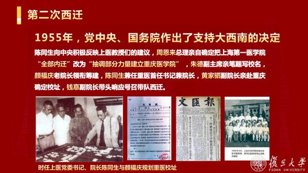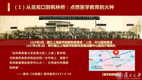 历史上,上医的办学地址曾经多次变迁。从吴淞口到枫林桥,上医在烽火岁月中为国育才、为战医伤,为国家点燃医学教育的火种;两度西迁,上医弦歌不绝,建立“大后方医事中心”,开拓兴学,迁建重庆医学院,为国家保留和播撒医学发展的种子。2013年,枫林校区改扩建工程拉开帷幕,既保存了历史文脉,也极大地改善了办学空间不足的状态。96年来,变化的是枫林校园,不变的是医学初心。