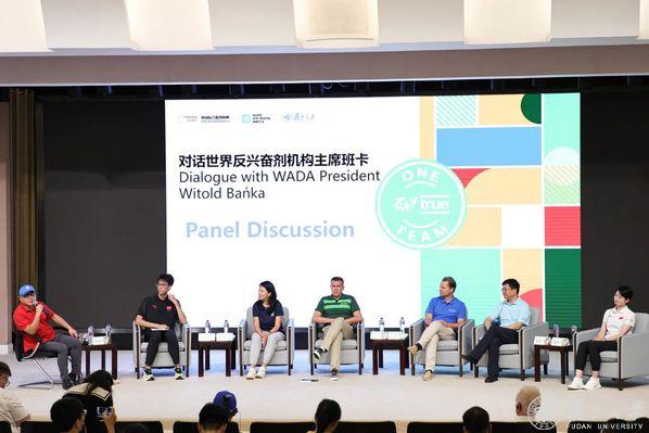 本次活动由中国反兴奋剂中心主办、复旦大学承办。复旦大学党委副书记金海燕致辞。世界反兴奋剂机构(以下简称“WADA”)主席班卡、副主席“冰雪女王”杨扬、总干事尼格利(Olivier Niggli),中国反兴奋剂中心主任李志全,两届奥运冠军、中国跆拳道协会副主席吴静钰,雅加达亚运会、2019国际田联钻石联赛男子跳高冠军王宇等出席活动。中国反兴奋剂中心副主任詹晖主持主旨演讲环节,复旦大学新闻学院张力奋教授主持圆桌论坛环节。