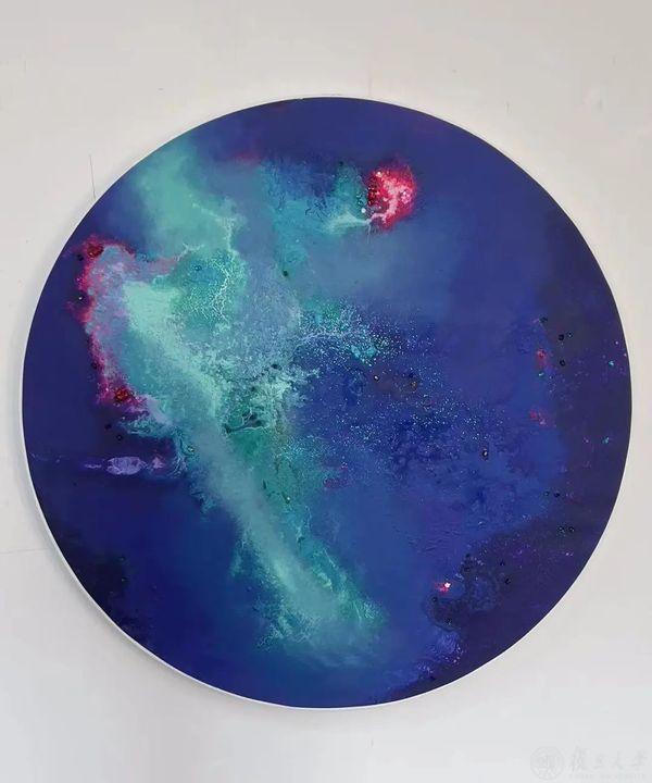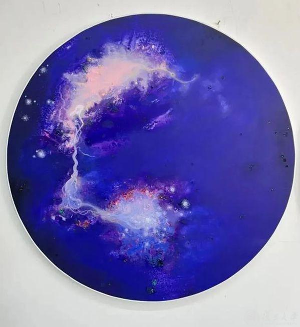 张勇的《星空1》《星空2》创作于2023年。他表示:“世上最让我震惊的是我们头顶上的星空,人类文明的进步,一定是从凝望星空开始的。选择圆形画框是星球也是观测宇宙的视窗,表现内容为浩瀚无垠的宇宙中神秘莫测的星尘多变却永恒的魅力。”作品用自古人类仰望星空的姿势,极力探寻一种方式,能让微弱个体的内心温柔地靠近一切情感的古老源头。