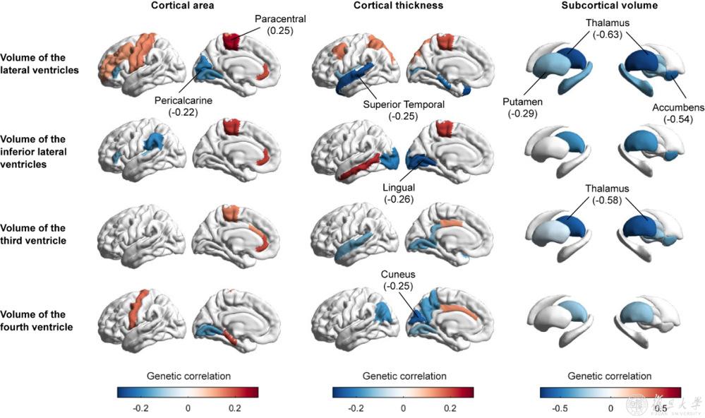 脑室形态与皮层表面积、皮层厚度、皮层下体积存在遗传相关性