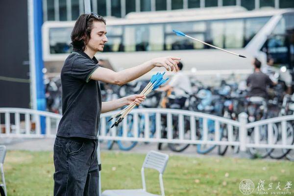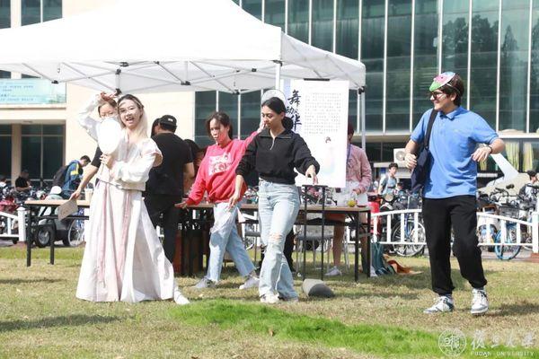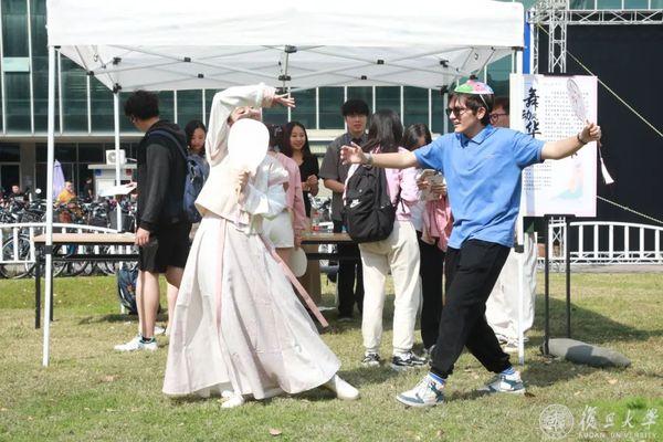 10月24日,中午光华楼东侧草坪人头攒头,复旦中外学生相聚在“传统文化传承与国际传播”国风嘉年华上。