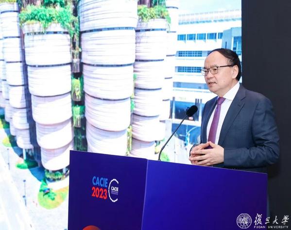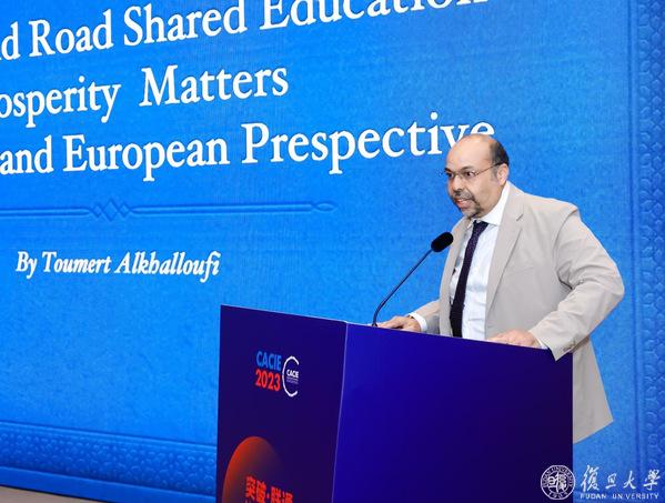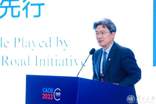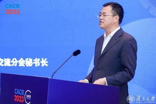 中国教育国际交流协会副秘书长安延,“一带一路”教育国际交流分会理事长、复旦大学副校长陈志敏出席会议并致辞。中国教育国际交流协会学术交流与研究部副主任李阳发布《2023年中国高等教育对外开放状况调查报告》摘要,介绍我国高等教育对外开放的最新发展情况。上海城建职业学院校长、“一带一路”教育国际交流分会副理事长叶银忠,北京语言大学副校长、“一带一路”教育国际交流分会副理事长张宝钧,西南交通大学副校长姚发明,南洋理工大学协理副校长刘宏,浙江省杭州市教育局副局长孙青峰,中国摩洛哥友好协会秘书长托马,复旦大学一带一路及全球治理研究院副研究员、澜沧江—湄公河青年交流合作中心副秘书长张励,山东高速路桥国际工程有限公司高级工程师石祥玉,北京科技大学巴基斯坦优秀留学生代表、深圳大学人工智能与数字经济广东省实验室特聘副研究员沙德分别进行主旨发言。“一带一路”教育国际交流分会秘书长、复旦大学党委宣传部部长陈玉刚主持会议。