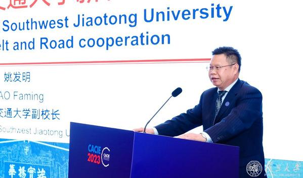 姚发明介绍了西南交通大学在参与“一带一路”国际合作和人才培养等方面的卓越贡献。近年来,西南交通大学主动参与“一带一路”建设,不断加大实施国际化战略力度,发起成立“‘一带一路’铁路国际人才教育联盟”,共同构建铁路国际人才培养培训体系,共同制定铁路教育的国际标准,共同开展铁路国际人才学历教育与专业培训,支撑共建“一带一路”国家科技合作和搭建开放共享的育人平台,为“铁路走出去,教育要先行”,努力讲好“西南交大”故事。在金色十年的关键节点上,以习近平总书记宣布中国支持高质量共建“一带一路”的八项行动为指针,西南交通大学未来还将打造并扩大“天佑铁道学院”品牌,加大与铁路“走出去”的中资企业合作力度,进一步加强与共建“一带一路”国家的国际合作研究和人才培养培训。